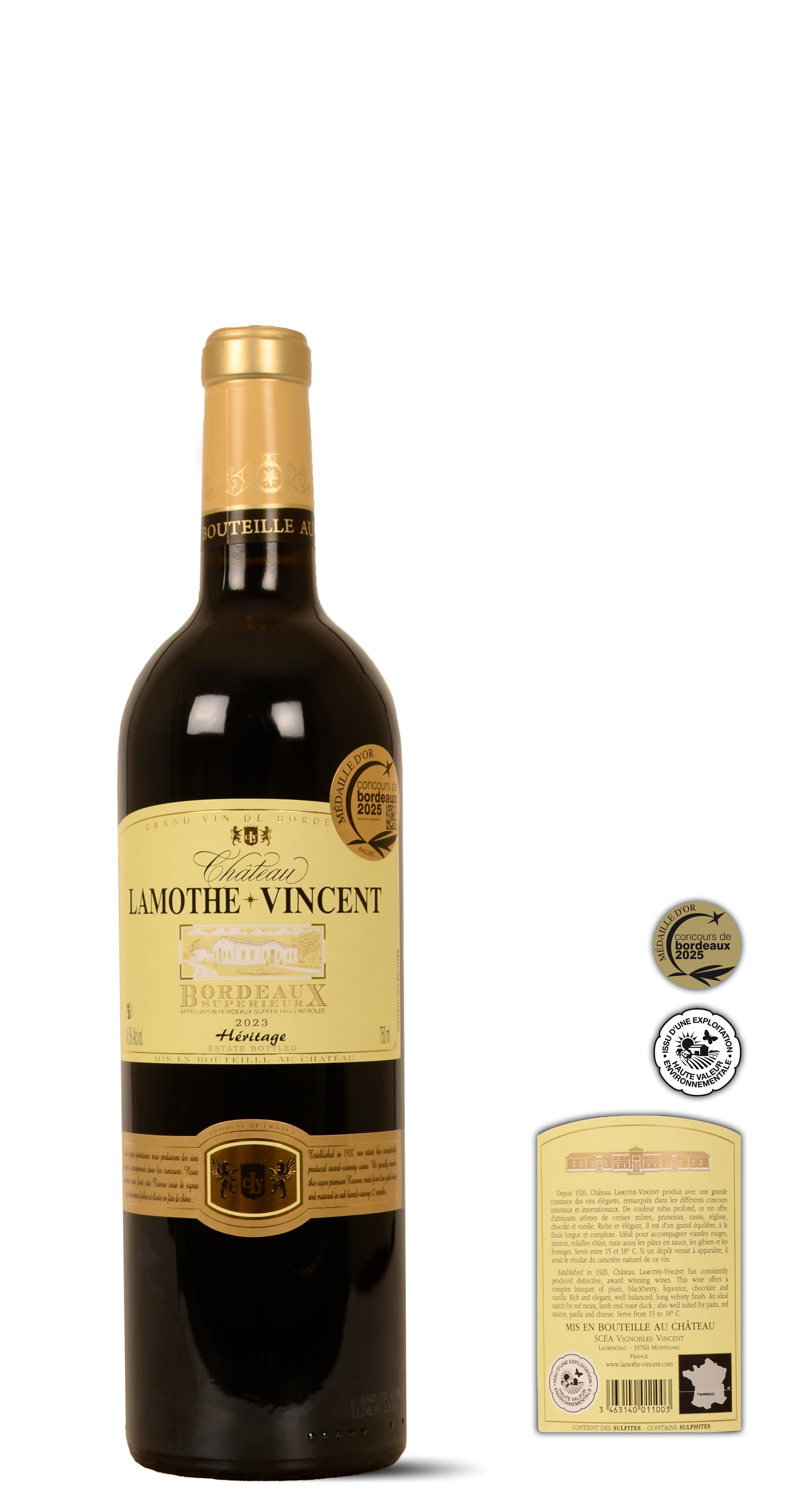 Variëteiten aangepast aan de bodem en blootstelling aan de zon. Verwijdering overtollige knoppen, groot bladoppervlak, blad pluk, Uitdunnen gewas. Perceel selectie. Handmatige selectie van de oogst op een sorteertransporteur in de kelder. Volledig pletten-ontstelen. Koude pre-fermentatie maceratie gedurende 6 dagen. Temperatuur gecontroleerde vergisting bij 28-30°C. 20 tot 30 dagen gisting. Micro oxygenatie. Rijping op droesem in Franse en Amerikaanse eiken vaten (33% nieuw) gedurende 12 maanden.